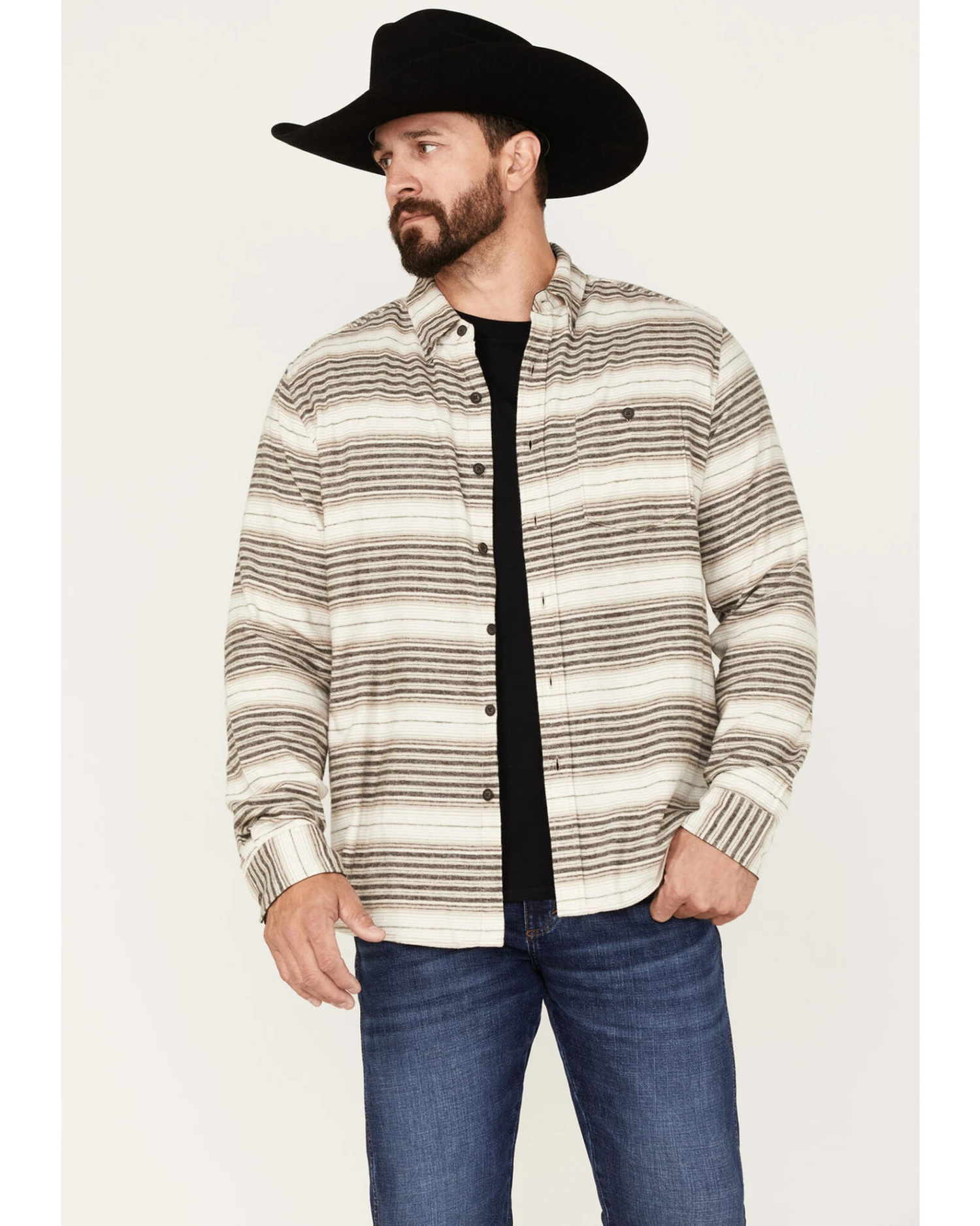 North River Men’s Stripe Long Sleeve Button Down Flannel Shirt